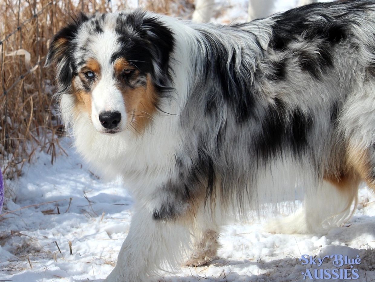 Caper is our new upcoming sire! He has completed his Championship in AKC Conformation. Caper's pedigree is full of well respected Champion lines! He is friendly and outgoing and loves everyone. Such a happy go lucky boy! We are very excited to cross him with some of our foundation lined girls ! Co-owned with Helix Aussies , Bridgid Nolan.