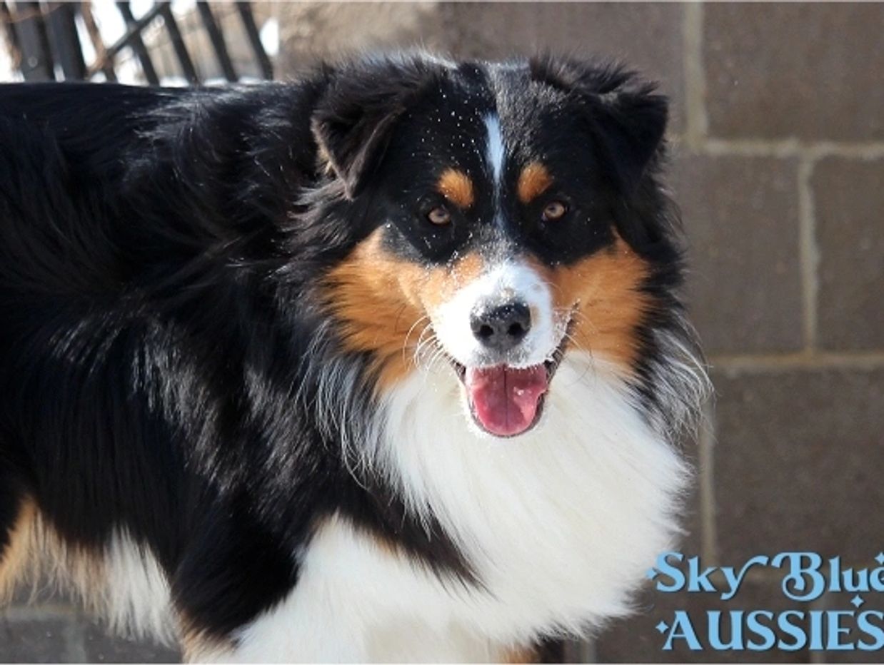 Tripp is our perfect black tri boy! He is a grandson of our foundation boy Bowdie and a son of our foundation girl Kimber. He is the PERFECT example of what an aussie should be - cute, fun, easy to train, loving and loyal. Never meets a stranger. Tripp is titled in AKC AND ASCA Agility and AKC Rally & Obedience.. He has his GCG and TKI ( Trick Dog Title) Co- owned with Helix Aussies , Bridgid Nolan